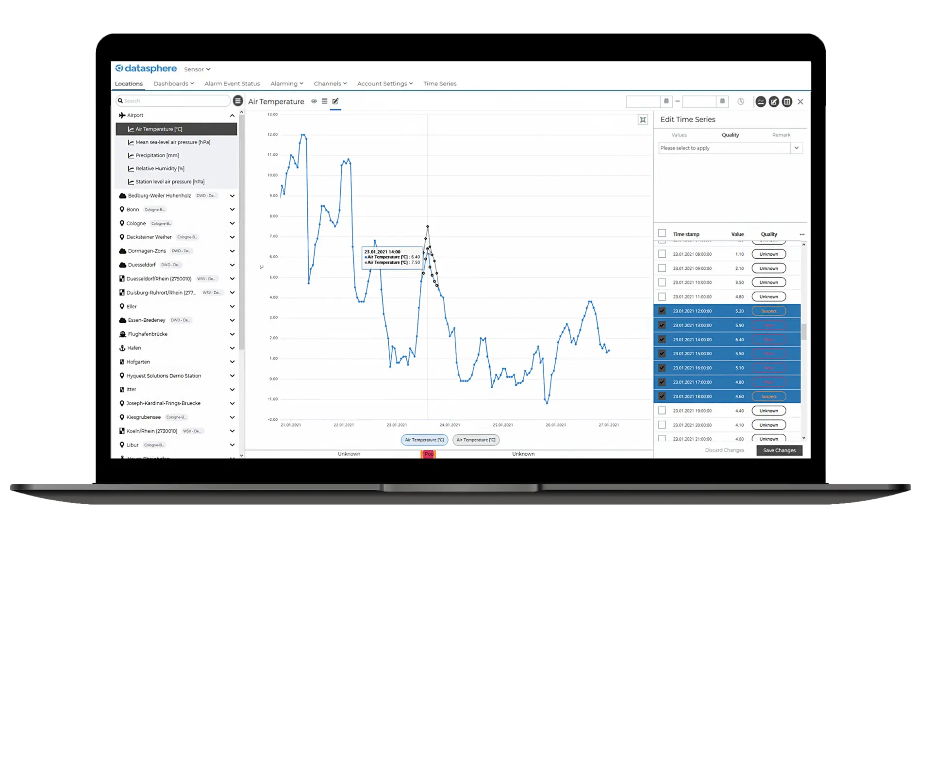 KISTERS datasphere rassemble les données passées, présentes et prévisionnelles provenant de plusieurs sources sur une plateforme cloud intuitive, vous permettant ainsi d’en voir davantage, de comprendre plus rapidement et d’agir en toute confiance. Suivez les niveaux d’eau. Surveillez les réseaux de capteurs. Comparez les sites. Sans codage. Sans installation. Sans outils rigides. Sans payer pour des modules inutiles. Tout simplement des informations intelligentes, dès le premier jour, prêtes à évoluer avec vous.