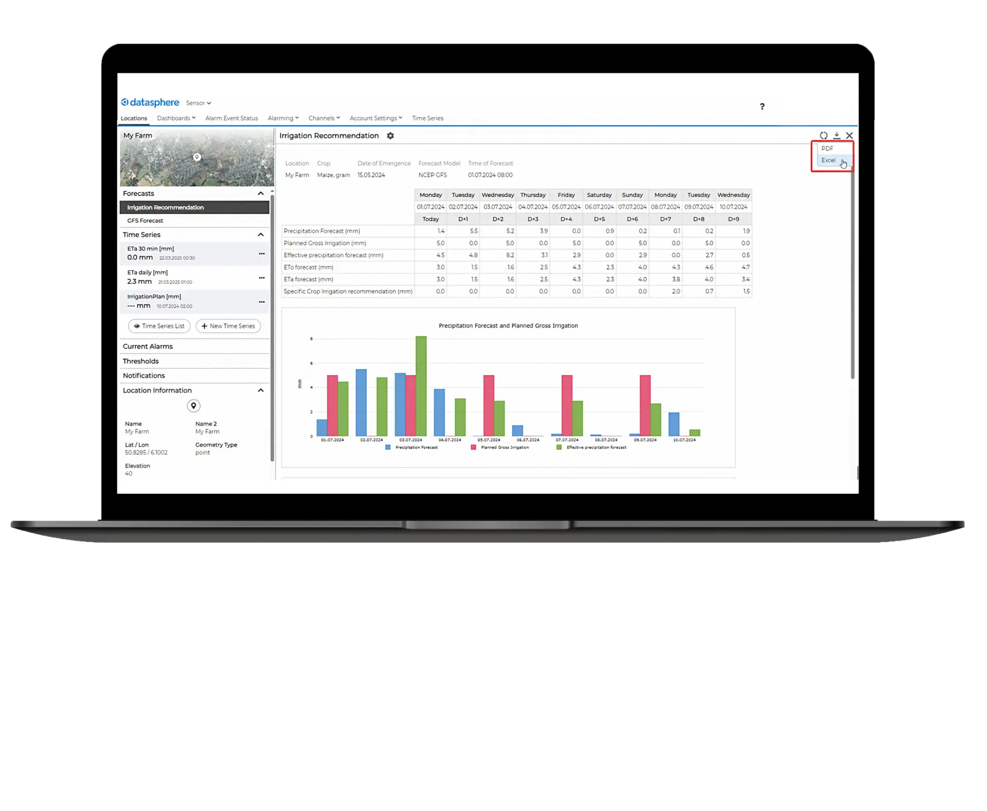 • Basé sur les prévisions météorologiques, le type de sol et les paramètres spécifiques aux cultures